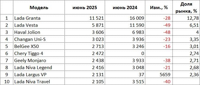 В июне в России продано 90 116 новых легковых автомобилей, что на 27% меньше, чем в июне прошлого года.