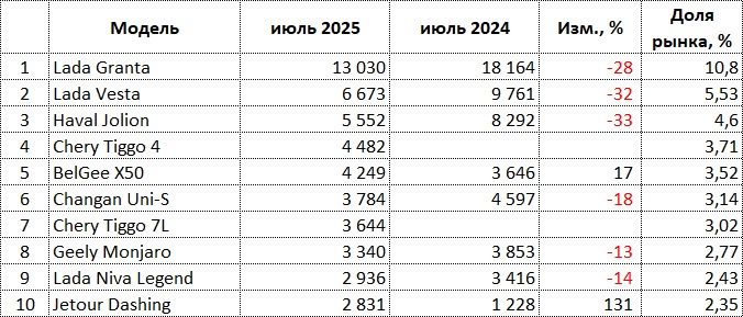 В июле 2025 года в России продано 120 649 новых легковых автомобилей, что на 11% меньше, чем в июле прошлого года.