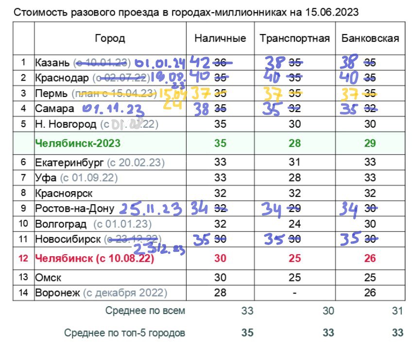 Отдельно отметим неэффективные билетные решения третьего города страны. В то время как Казань и Краснодар уже подняли разовый проезд до 42 и 40 рублей, в Екб сдерживают рост стоимости проезда на уровне 32-33р! Это уже привело к дефициту водителей, устареванию трамвайных вагонов. Дальше будет только хуже."