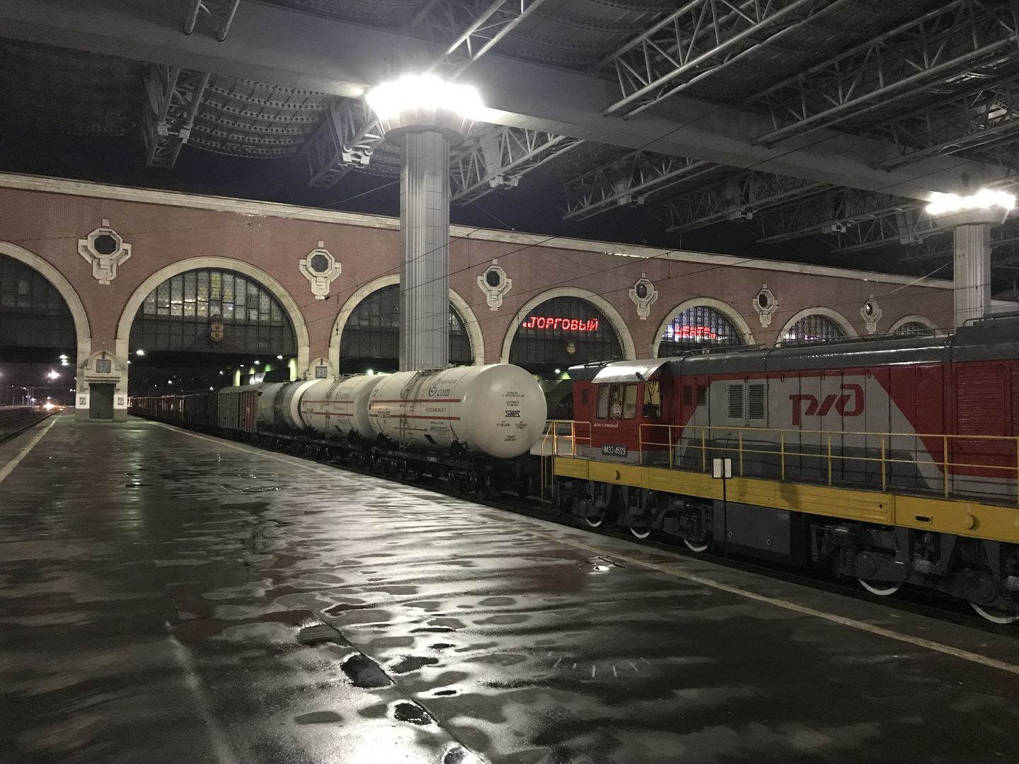 Не думал, что грузовые вагоны на мосузле могут выкатывать вплоть до пассажирской платформы Казанского вокзала. Естественно, ночью.