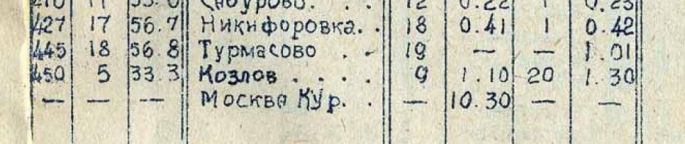 Вот выдержка из расписания Курского вокзала-1973:
