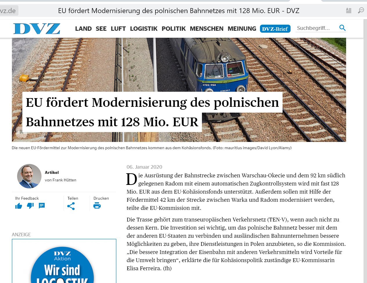 ЕС инвестирует в ЖД Польши еще 128 млн. евро. Автоматизация управления главного хода и сортировок на 92 км пути по южному обходу Варшавы. Дело хорошее!