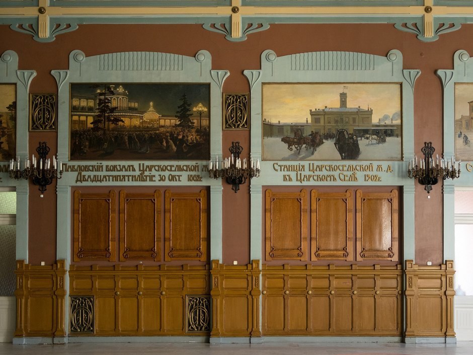 Только что в Картинном зале (где, кстати, можно ознакомиться с основными вехами сооружения Царскосельской ж.д.) закончила свою работу продолжавшаяся больше месяца выставка одежды эпохи Модерна из коллекции известного историка моды Александра Васильева, которая смотрелась там очень органично. Зал ресторана, кстати, тоже доступен для обзора (пока).