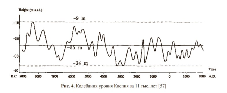 На этом графике колебаний уровня Каспия виден и пик 1500-1750 годов – малое оледенение.