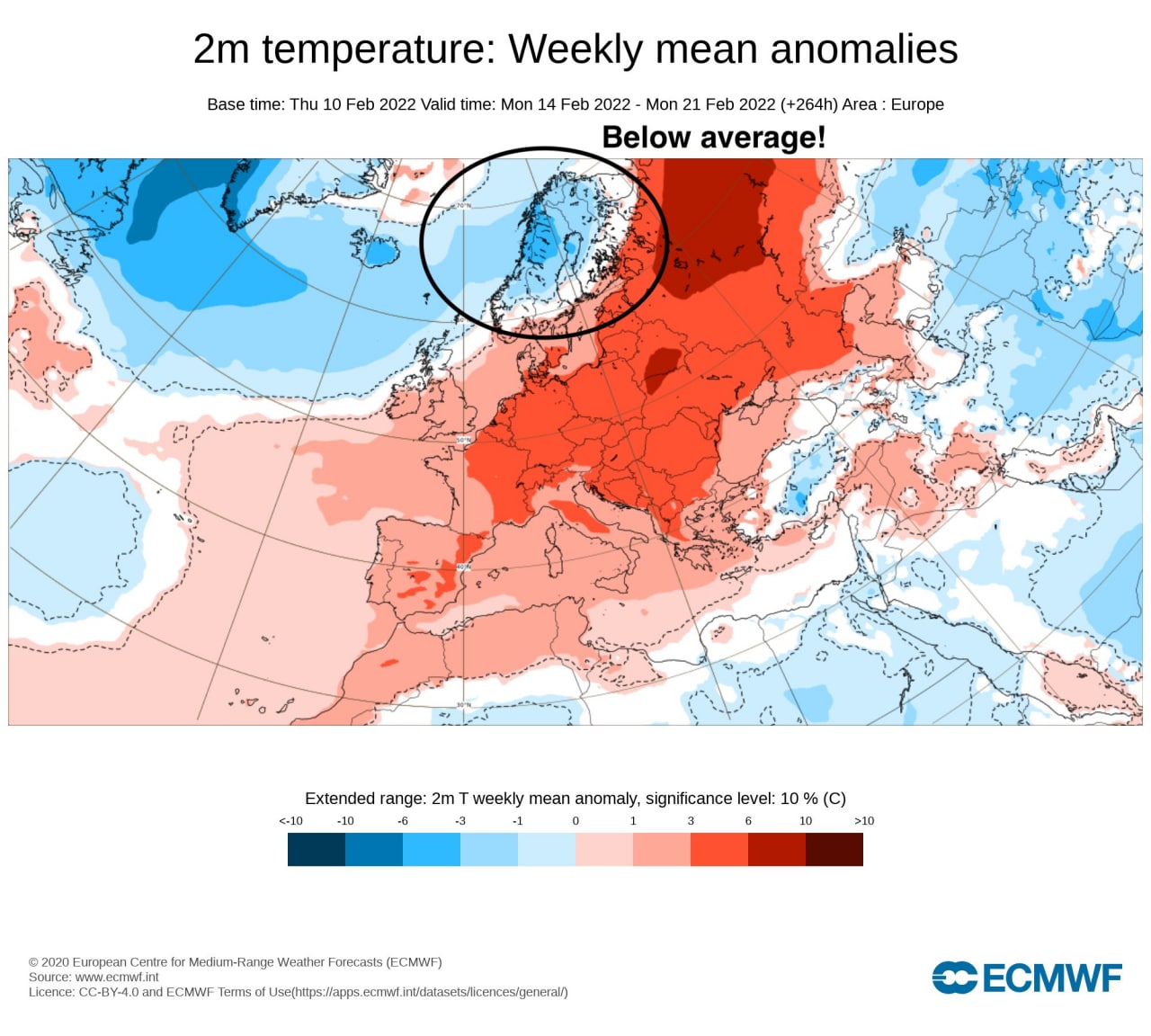 Эта неделя на Восточно-Европейской равнине будет на 3-6 градусов теплее нормы. А вот восточнее Урала (и север Скандинавии) – холоднее нормы.