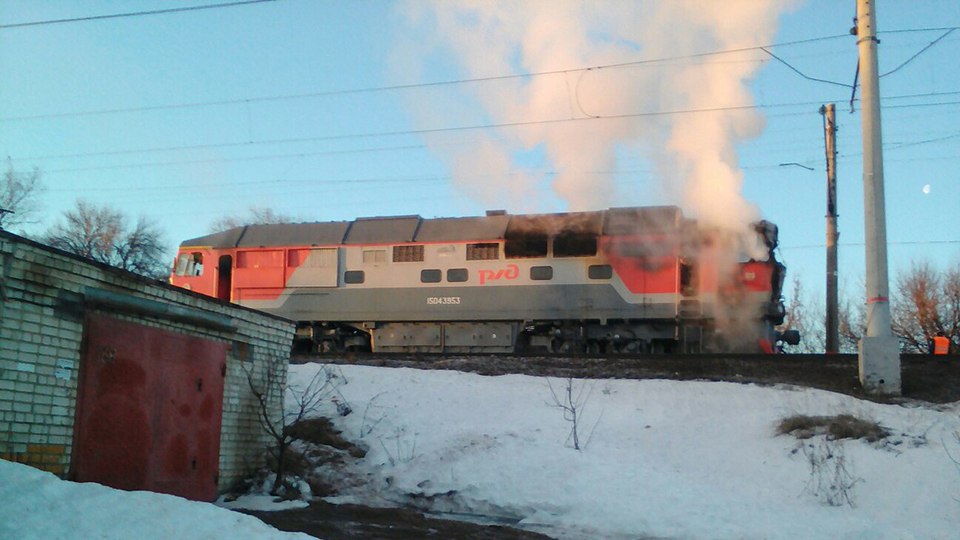 Фото горящего тепловоза из Саратова! Опоздала сегодня по прибытию 10-ка из Москвы на 10 минут.