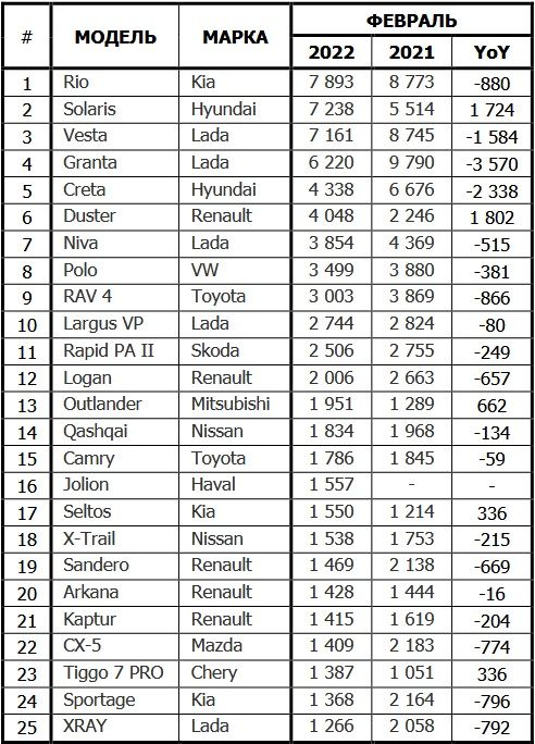 На другую тему. В феврале российский авторынок новых автомобилей снизился на 4,8% и составил 114 349 автомобилей. Интересно что в марте будет.