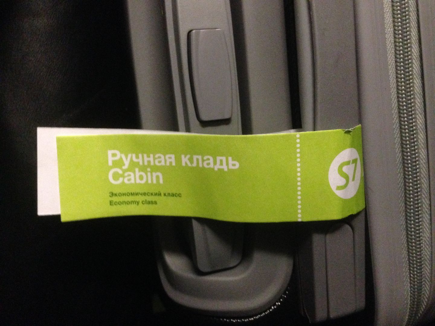 Раньше до начала эры "безбагажных тарифов" я всегда любую сумку старался сдать в багаж - теперь невольно все свое приходится тащить в салон и поэтому пришлось идти на посадку в первых рядах, дабы занять место под ручную кладь на полке, т.к. все вынуждены теперь свои мини-чемоданы тащить в салон. Изначально я не обратил внимание на то, что на мини-чемодан наклеена зеленая, а на спортивную сумку - оранжевая бирка ручной клади -