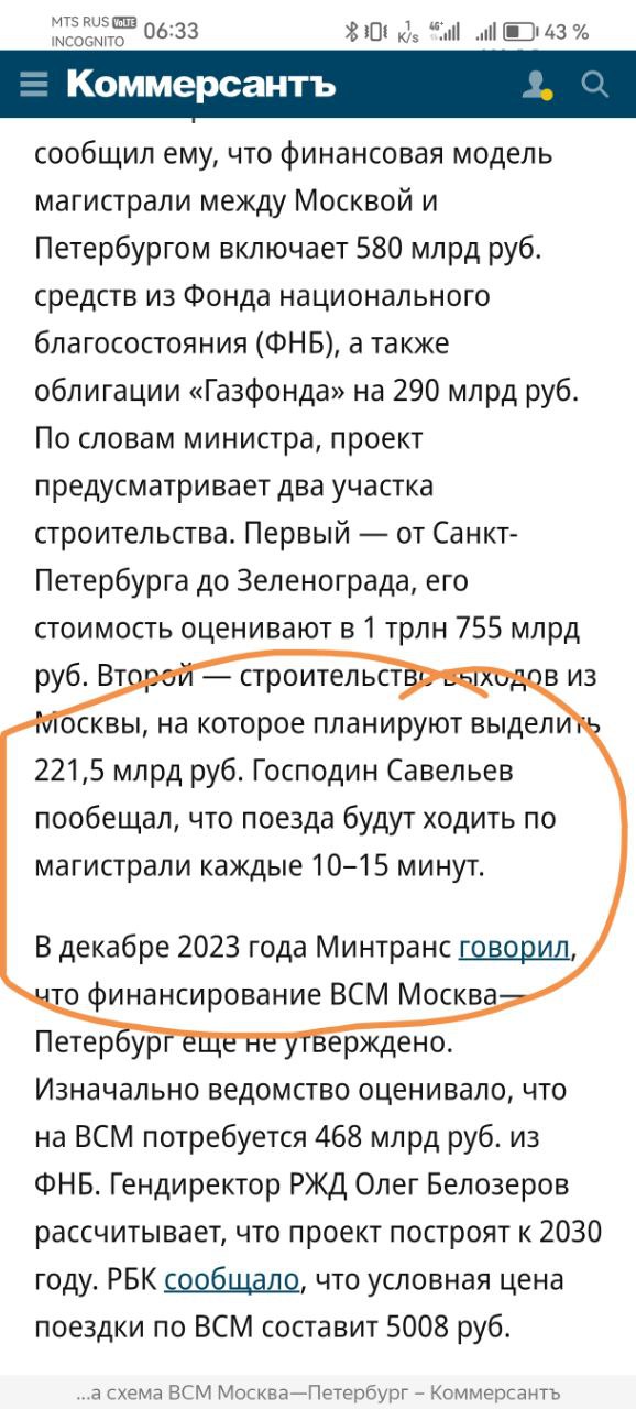 Ну не. ВСМ реально ускорит поездки, все дела, вопрос чисто в том, насколько страшная себестоимость у них будет. Что, в Нижний за 1:40 это прям вообще не нужно? Или в Воронеж/Липецк за два часа?