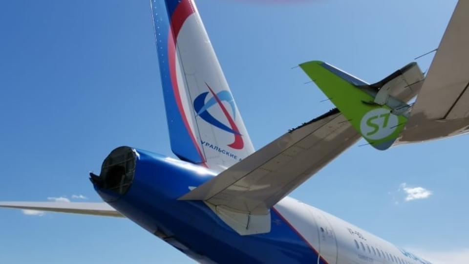 Касательное столкновение самолетов а/к S7 и "Уральские Авиалинии", произошло на ВПП.