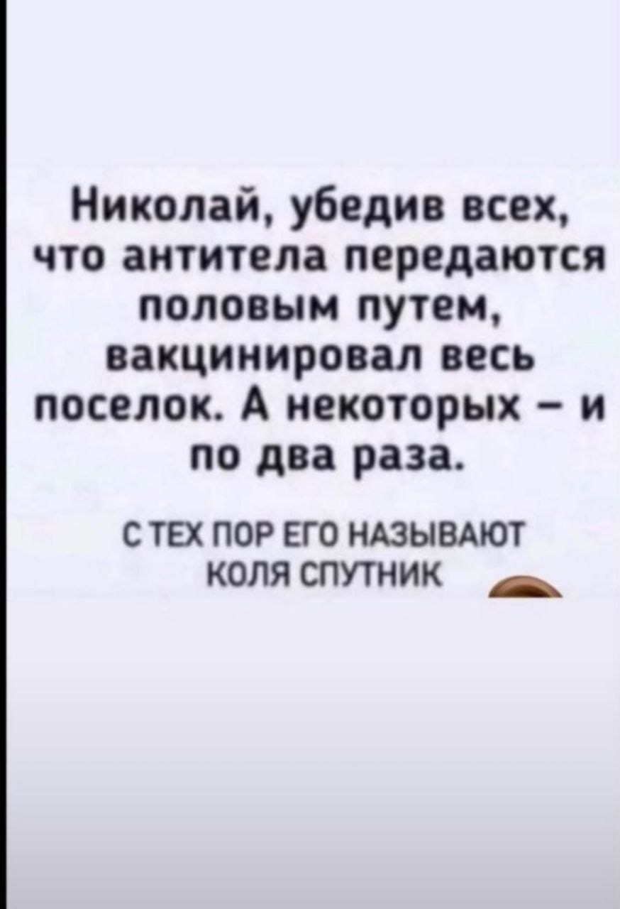 Второй медовый месяцLandsberg:Если всех снова запрут по домам это положительный момент, будет чем занятьсяv_gildenberg: Спутник V кстати резко повышает потенцию