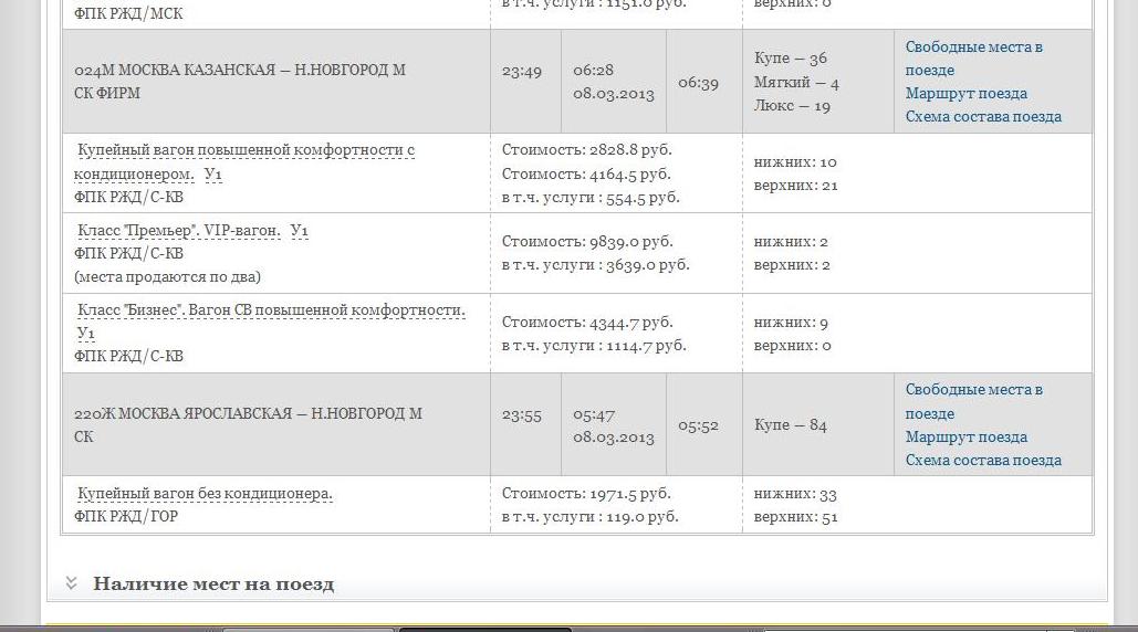 и видим что москва-питер купе почти во всех по несколько штук осталось