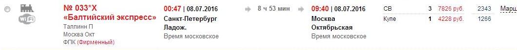 п. 7/8 С-Петербург Гл. – Москва Окт. – С-Петербург Гл.