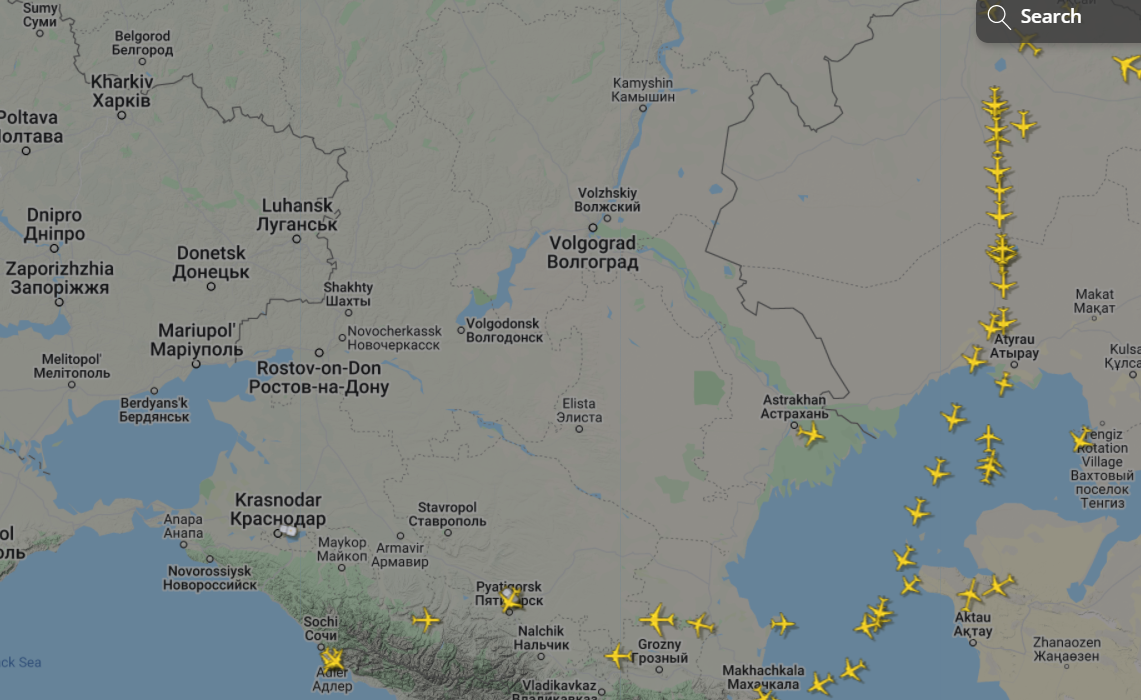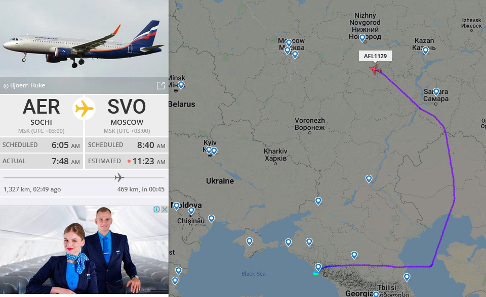 Последний вывозной из Сочи? Теперь slon-у двухэтажечкой ездить придётся?LmV: Это да. Ну и, соответственно, все, кто пролетал над ЧКП и Черноземьем, теперь летят над Каспием и Казахстаном. Даже из Астрахани и Сочи.