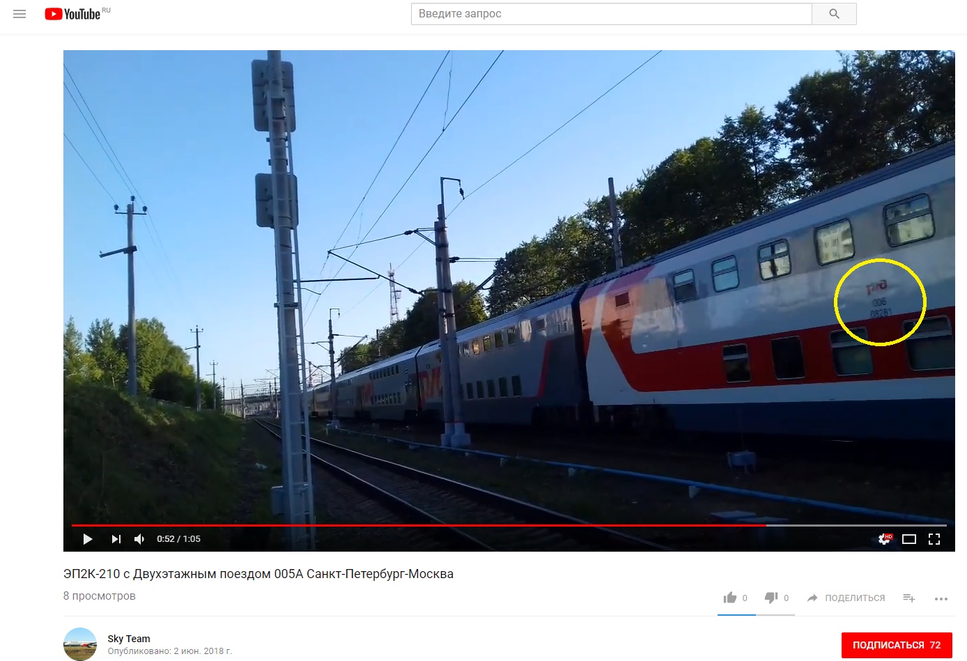 Нашел здесь: https://www.youtube.com/watch?v=mrL0L7yv3uE (ЭП2К-210 с Двухэтажным поездом 005А Санкт-Петербург-Москва).