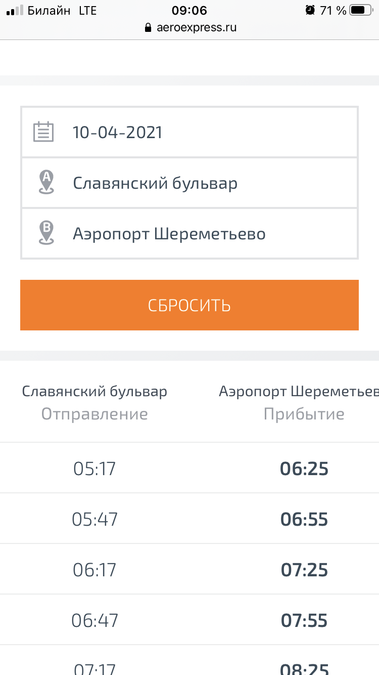 Вылетать мне сегодня в НиНо (особо туда и не надо было), билет купил на распродаже за 2500 туда-обратно, заранее посмотрел расписание на сайте Аэроэкспресса, подобрал поезд, задав дату (10 апреля), станцию отправления - Славянский бульвар, сделав это за пару дней до поездки. Приезжаю сегодня и узнаю, что аэроэкспрессы сегодня в Шереметьево отправляются от Савеловского вокзала. Думал, ехать ли на Савеловский (время в пути 27 минут при времени до отправления 31 минута), но решил не рисковать - в итоге еду на такси за 910 рублей