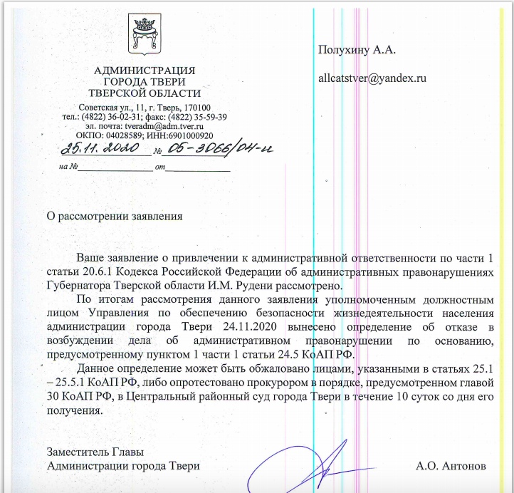 ответ пришел - "отсутствие события административного правонарушения"