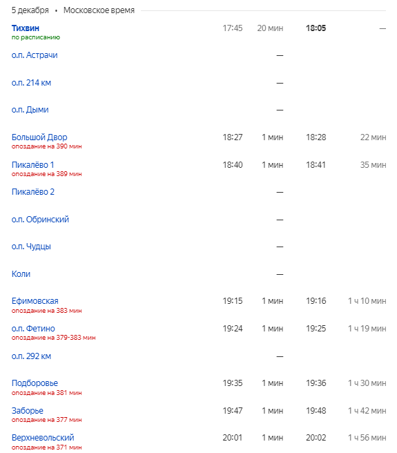 Сейчас попытался найти какое-нибудь расписание на сайте РЖД, где были бы техстоянки на Глухоозерской, в Колпино или Ушаках - и, кажется, они просто не отображаются в маршруте. Не видел, чтобы там у времени стоянки звёздочка стояла.