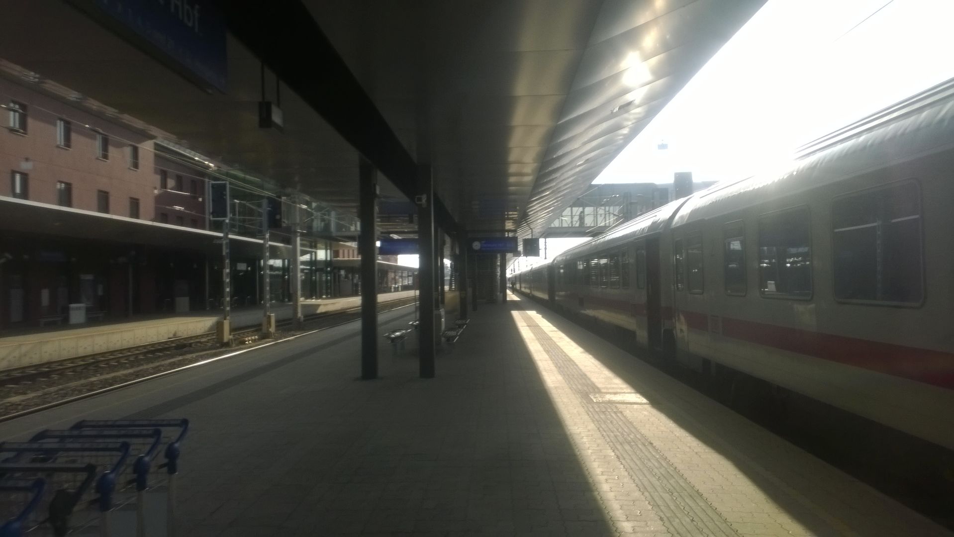 Маршрут обслуживается поездом DB. В поезде сидячие вагоны самолётного и купейного типа 1-го и 2-го класса. В 1-ом классе купейной сидячки схема мест 2+2. Во втором классе - всё примерно как в Невском Экспрессе - и столики ,и сидения похожие, разве что телевизоров нет. Впрочем, нужны ли они? Вопрос риторический.