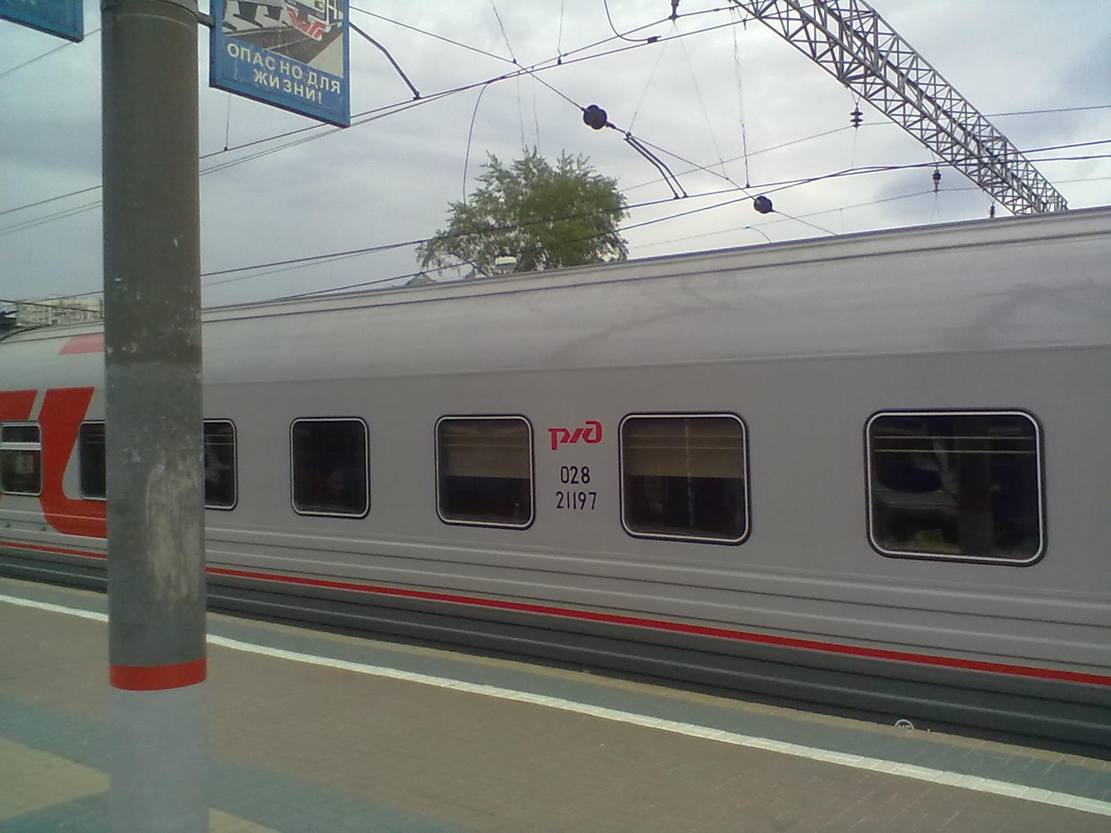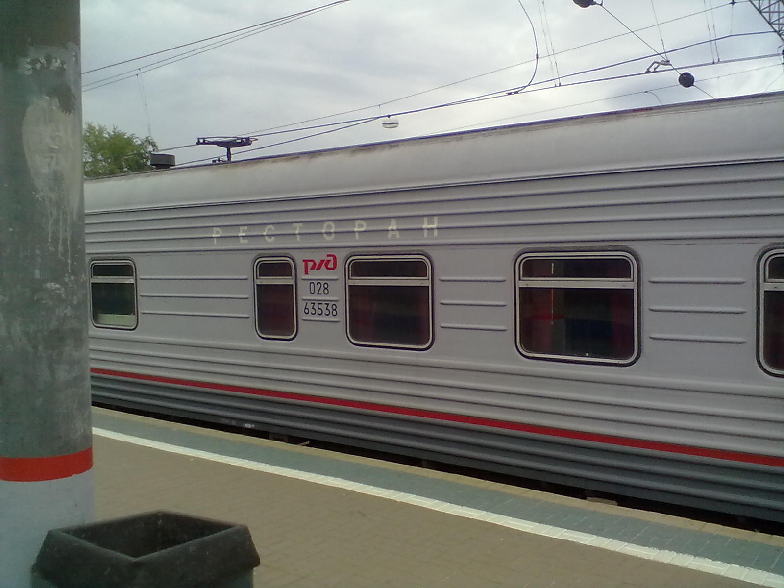 2. Внешний вид. Темно-зеленые вагоны с названием поезда поверх окон и маршрутом под ними. Все вагоны - ''наутилусы'' ТВЗ, среди которых была парочка купейных новой модели. Модный нынче окрас был только у одного вагона - ресторана, который, кстати, тоже оказался ТВЗ.