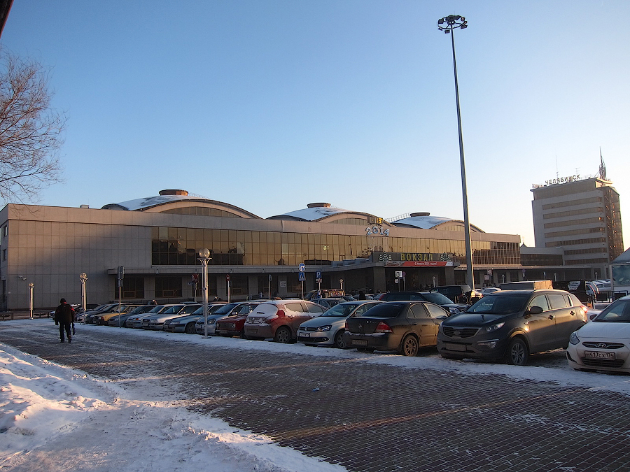 Отправление поезда по графику было запланировано на 15:35 (мск), поэтому с учётом Челябинских +2 часов железнодорожный вокзал встретил лучами заходящего солнышка и бодренькими -19 по Цельсию: