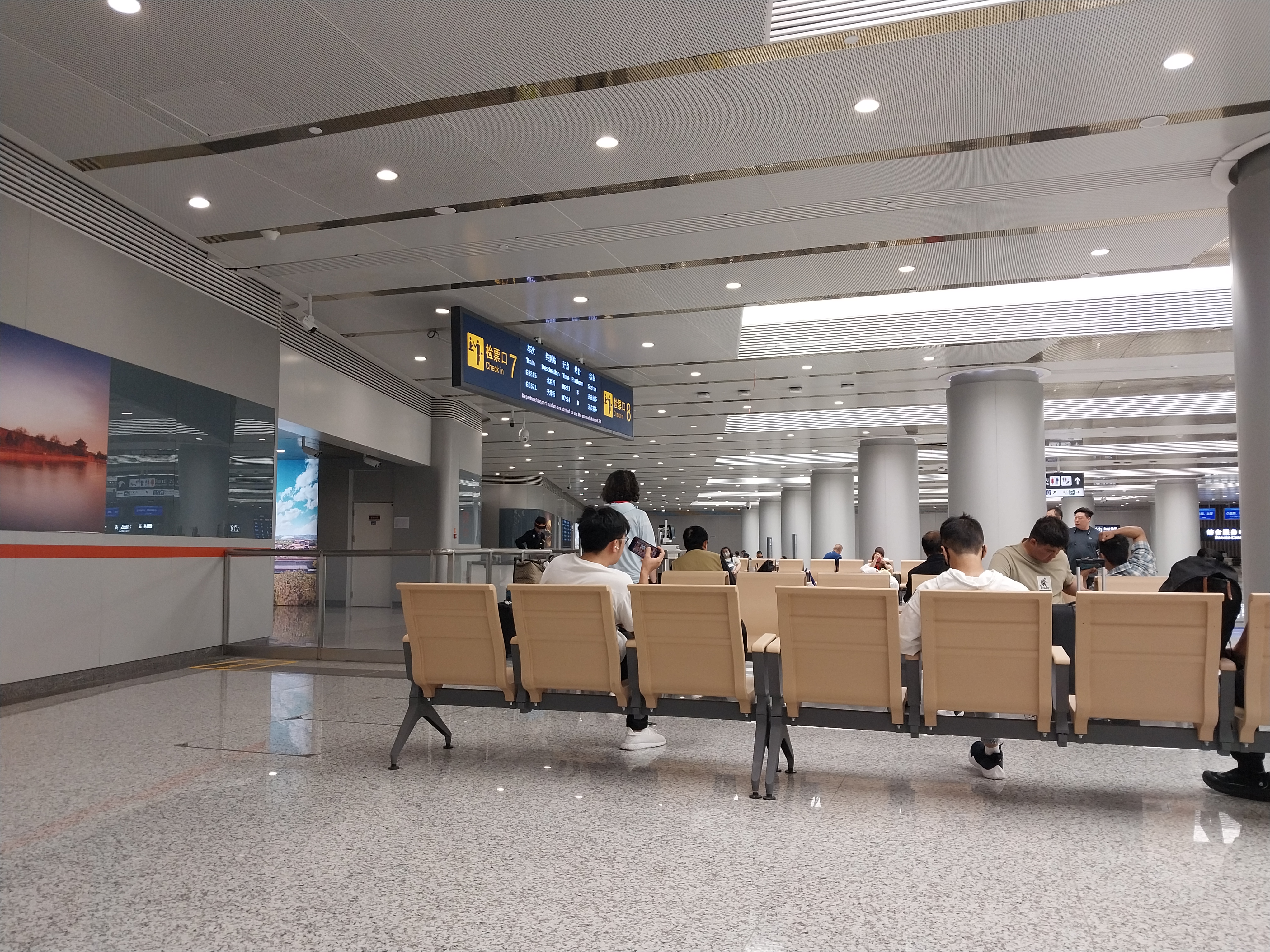 В дополнение к отзыву на поезд C2702 Сюнань - Пекин решил написать отзыв об еще одном поезде, т.к. у него был некоторый нюанс, да и мало фото попало в первый отзыв. Маршрут тот же - Дасин аэропорт - Пекин Дасин, дата поездки 3 июн 25. В отличие от более быстрого С2702, G8815 идет между этими станциями 46 минут. Причина в том, что маршрут у него немного другой, из аэропорта он идет до станции Гуань - Восточный, где меняет направление. Во время стоянки на этой станции (довольно длительной) проводница прошла по вагону, согнала всех с мест и развернула все сиденья на 180 градусов (для этого есть специальный рычажок, нажав на него, она сразу разворачивает все три сиденья). чтобы все могли ехать лицом в направлении движения. Также на этой станции сотрудник прошел по вагону и у всех проверил паспорта. В остальном отличий от поездки на C2702 не было. При выходе на станции Пекин Дасин (где пересаживался на метро) после выхода из вагона пошел не в ту сторону, тогда сотрудник, дежуривший на платформе, показал рукой в противоположном направлении и по-русски произнес "тебе туда" (всегда - кстати - удивляло - как они по виду сразу отличают русских от других чужеземцев ?). К съемке на объектах жд инфраструктуры - кстати - сотрудники относятся вполне спокойно - ни разу никто ничего не сказал, хотя фотографировал у них на глазах).