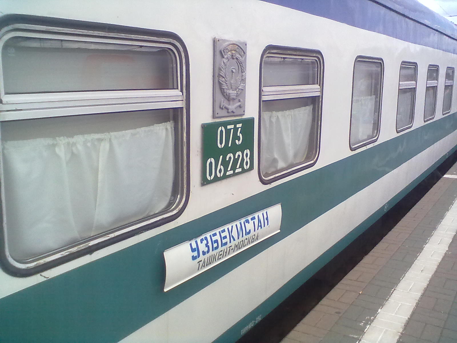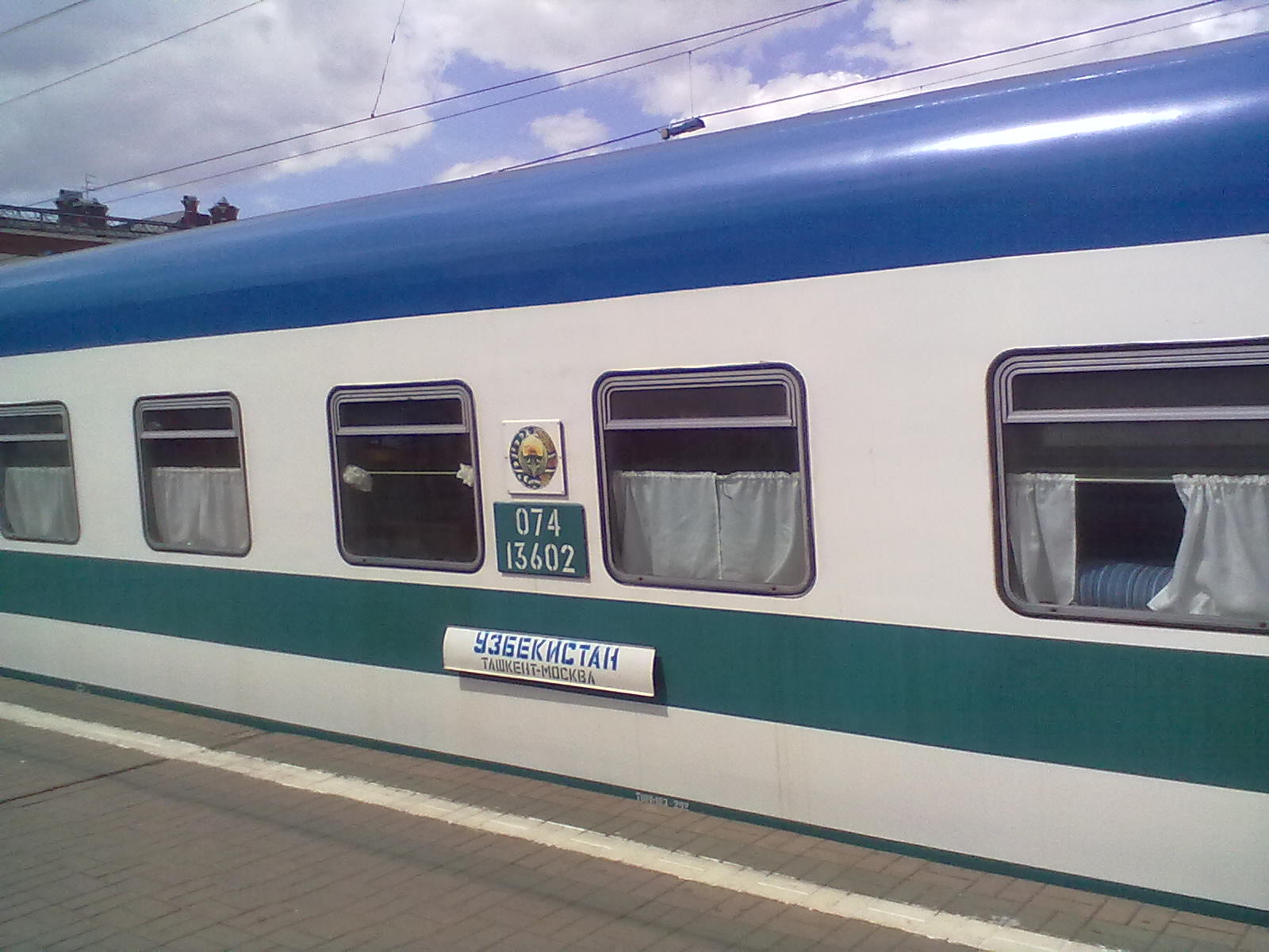 Однако тут меня ждал сюрприз. Купе с моим местом оказалось единственным запертым в вагоне. Когда я, еле расходясь с входящими с сумками другими пассажирами, наконец, добрался до проводника, он сказал, что там они едут, а мне посоветовал присесть в соседнем пустом. Я так и сделал. Однако потом пришел второй, представившийся начальником поезда и велел мне пересаживаться на свое место. Я, конечно, так и сделал. Там на соседнем месте ехала русская бабушка, проживающая в Ташкенте и ездящая в Москву на операцию (к ней, кстати, тот начальник поезда проявил большое уважение, обещая даже по приезду в Ташкент вызвать такси на вокзал). Мы поговорили, однако потом все равно проводник мне велел пересаживаться в другое купе, поближе к нему Я так и сделал, в итоге ехал в одиночестве. Проводник быстро после этого принес белье (обычное белое, но с махровым полотенцем). Только напрягало то, что проводники ночью очень громко разговаривали на узбекском языке, не давая нормально поспать. Утром одна тетка даже вышла из своего купе и также громко потребовала по-узбекски, чтобы они прекратили.