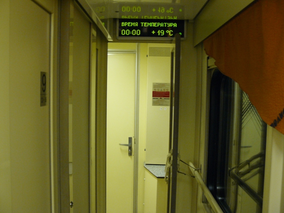 Общее впечатление от вагона - все отлично! Покрывала, занавески и шторки - фирменного оранжевого цвета, в гармонии с цветом пластика. Индикатор занятости туалета присутствовал. Идеальная чистота и порядок, в т.ч. в санузлах. Верхние полки, конечно, застелены, причем одеяло вшито в пододеяльник, а не предлагалось отдельно.