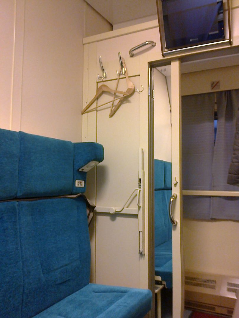 Как ни странно, обнаружились "косяки". 1.) В одном из туалетов вода из крана лилась с большим напором аж заливало все. Бумажные полотенца доставать было неудобно. Какое-то непонятное устройство. Во втором туалете все было в порядке. 2.) Что-то постоянно скрипело в купе, в районе двери. По-началу это совсем не мешало. Потом же, когда я лег поспать, скрип усилился. В итоге я просыпался чуть ли не каждые 15 минут. Странно, ведь вагон то новый, тем более СВ.