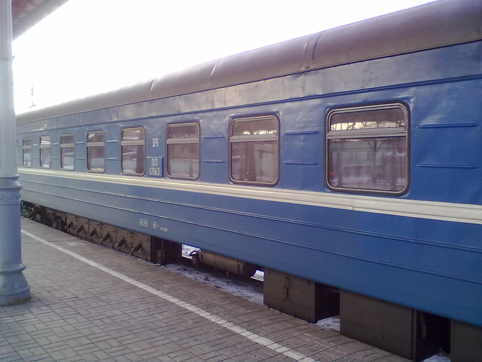 Общак в данном поезде просто поразил своей чистотой и уютностью. Хорошо натопленный практически новый вагон ТВЗ 2008 года с работающими индикаторами занятости туалетов, мягкими полками и тонированными стёклами. На третьих полках в первых 4 отсеках лежали матрацы с подушками. Населённость вагона по Барановичам - 4 человека.