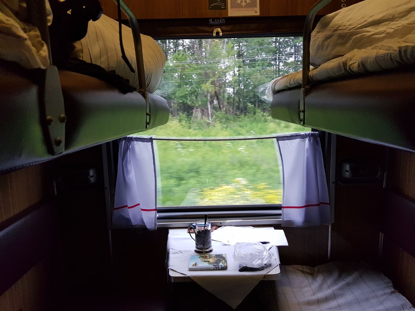 В целом поездка принесла огромное удовольствие, давно не ездил в старых немцах, в купе очень уютно и удобно,спал ночью под стук колес как младенец. Окна чистые, пейзаж за окном по маршруту очень красивый, особенно в этот период времени, на длительных стоянках, когда выходишь из вагона немного не привычно по сравнению с другими направлениями, ни людей ни палаток с пивом, глохомань. Но народ в поезде был, причем мой вагон был заполнен процентов на 70, плацкарт вроде почти весь, и постоянна посадка высадка на всем протяжении поездки.