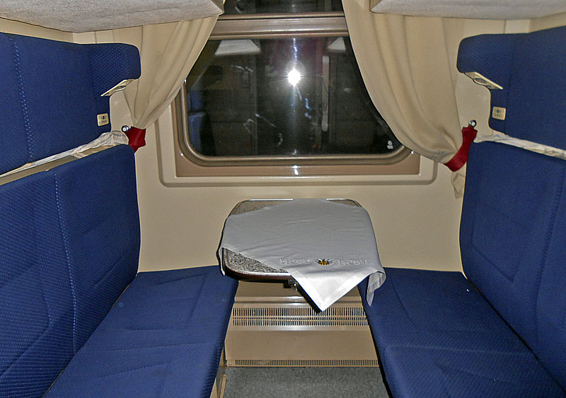 4) Качество обслуживания поездной бригады: Вагон обслуживала всего одна проводница. Представилась Светой, хотя лет ей было под 60. Ну, как говорится, главное, ребята - сердцем не стареть ::-): . С работой справлялась хорошо, отнесла в ресторан мои заявки на завтрак, обед и ужин, которые были исправно поданы. Правда, по ночам было довольно душно, по поводу чего она сказала, что иначе было бы совсем холодно. Что ж, не впервой это слышать. Ну и почему-то в вагоне оказались совершенно ужасные подушки. Надо было хоть пожаловаться, но я почему-то не стал...