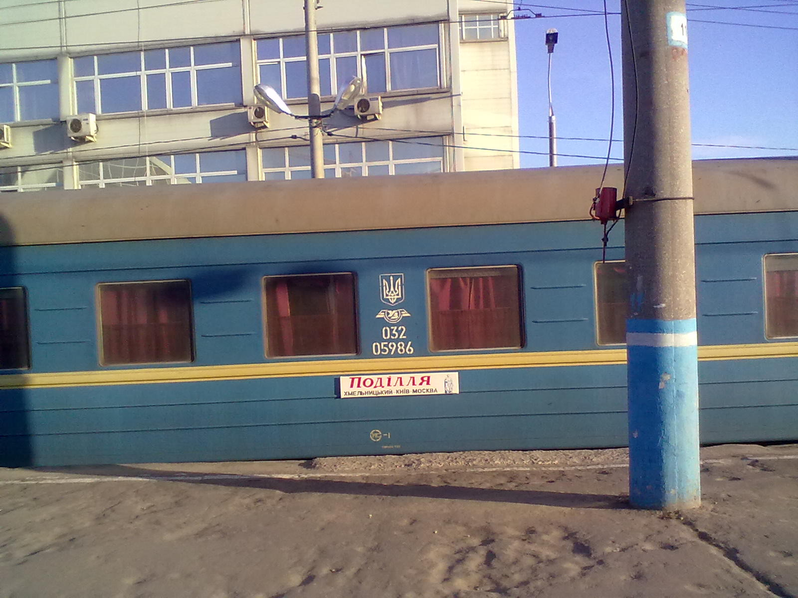 Провожал родственников в Москву на этот поезд. Нумерация вагонов с конца поезда. Купейные и СВ вагоны шоколадные Аммендорфы в основном без кондиционеров с деревянными рамами и стеклопакетами. Плацкартные вагоны КВЗ с деревянными рамами. Вагон 05К шоколадный Аммендорф без кондиционера. Нумерация вагонов с хвоста поезда. Два вагона (4К и 5К) остановились возле заграждения. Вагоны старые но ухоженные. Приятно ехать. И в этот раз проводница хвостового вагона стояла у рабочего тамбура с флагами и рацией. В этот раз все сесть успели, и ровно по расписанию поезд отправился. Поезд прибыл под украинским ЧС4.