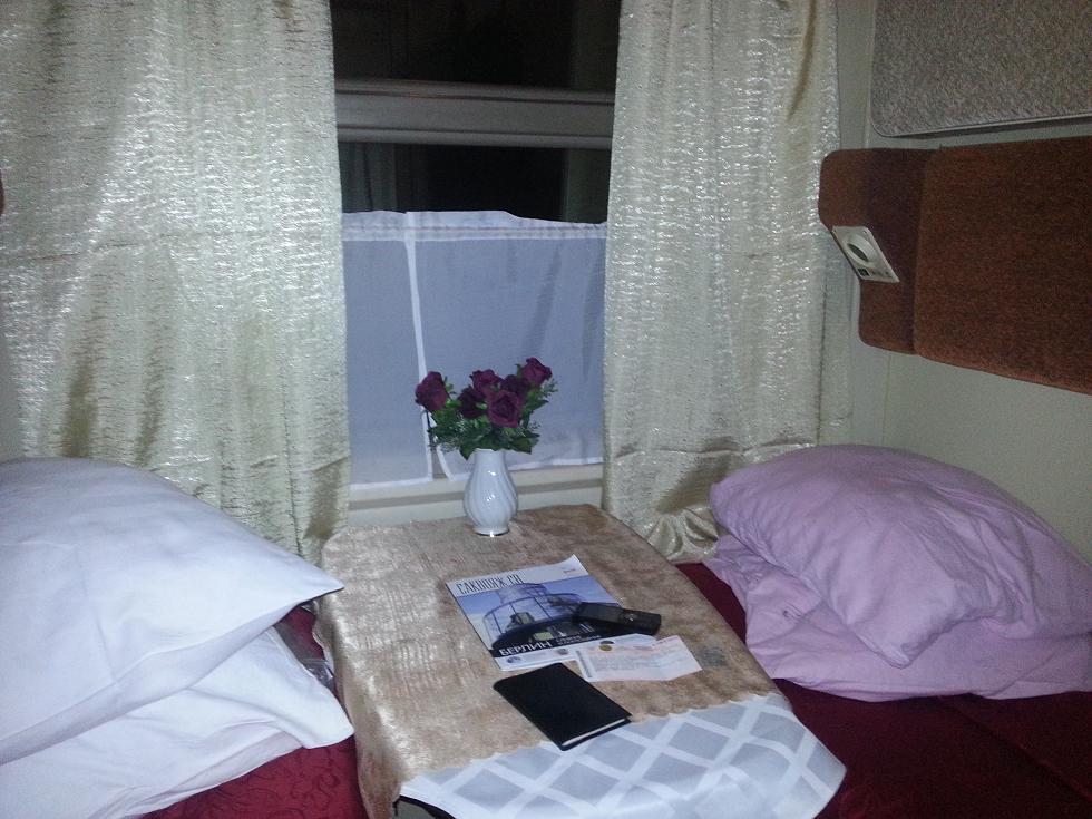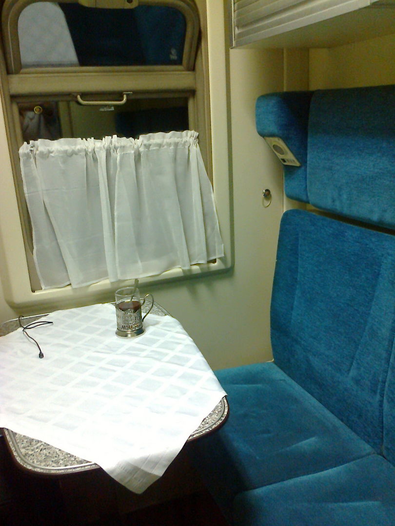 Собственно, предсказуемый поезд уровня фирмача. Единственное отличие с прошлым разом: чуть более старше купейные вагоны, на этот раз с коричневыми диванами и рундуками. А так все на высоте.