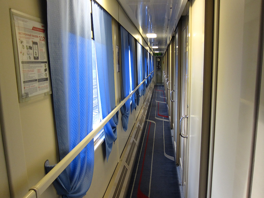 4. Один из двух диванов в купе был грязноватым. Правда, грязь при тестовом проведении по этому месту пальцем на нём не осталась, в итоге я забил на это дело и уселся как ни в чём не бывало. ::-): Может, пассажиры в своё время что-то маслянистое пролили, и оно в итоге так впиталось, что удалить уже не представляется возможным. Главное, что пассажиров не пачкает, хоть и портит внешний вид. В остальном всё ОК, в коридорах и туалетах чистота идеальная.