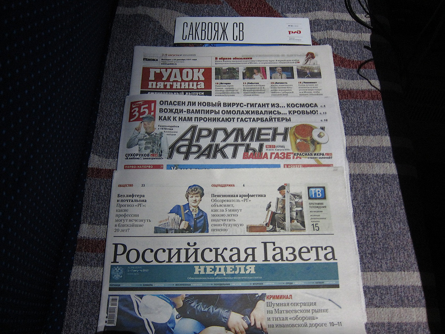 Пресса. "Саквояж.СВ", "Гудок" со вложенным "Куйбышевским железнодорожником", "АиФ" и "РГ". Всё самое любимое как на подбор и никакой желтизны!