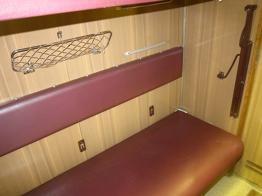 Мое место №37 (нижнее) в купе для отдыха проводников. Во всех купейных вагонах данного поезда места 37-38 поступают в продажу, а проводники занимают первое купе (места 1-4). На верхнее 38 место был на всякий случай приобретен фиктивный детский билет от Лянгасово до Зуевки (чуть больше чем за 400 рублей) с целью отрезать трамвайщиков до/от Кирова, посему соседа по купе в поездке не было. Дааа, "фирменное" откидное сиденье в купе было на месте!