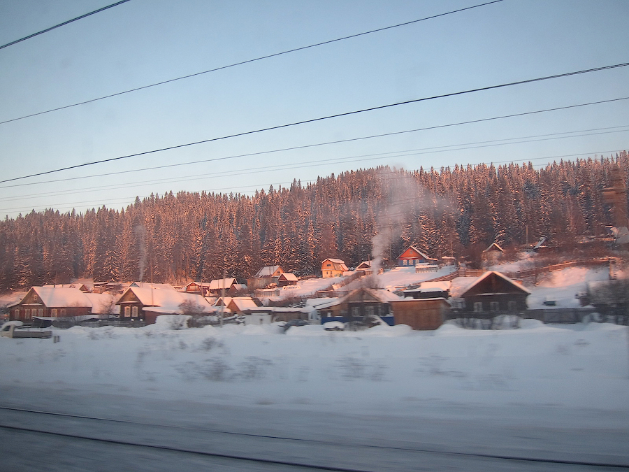 Утро 25 января встрело бодренькими -30 по территории Пермского края. В купе наличествовал ощутимый дубачок при том, что проводница даже обложила дверь в рабочий тамбур тряпками!
