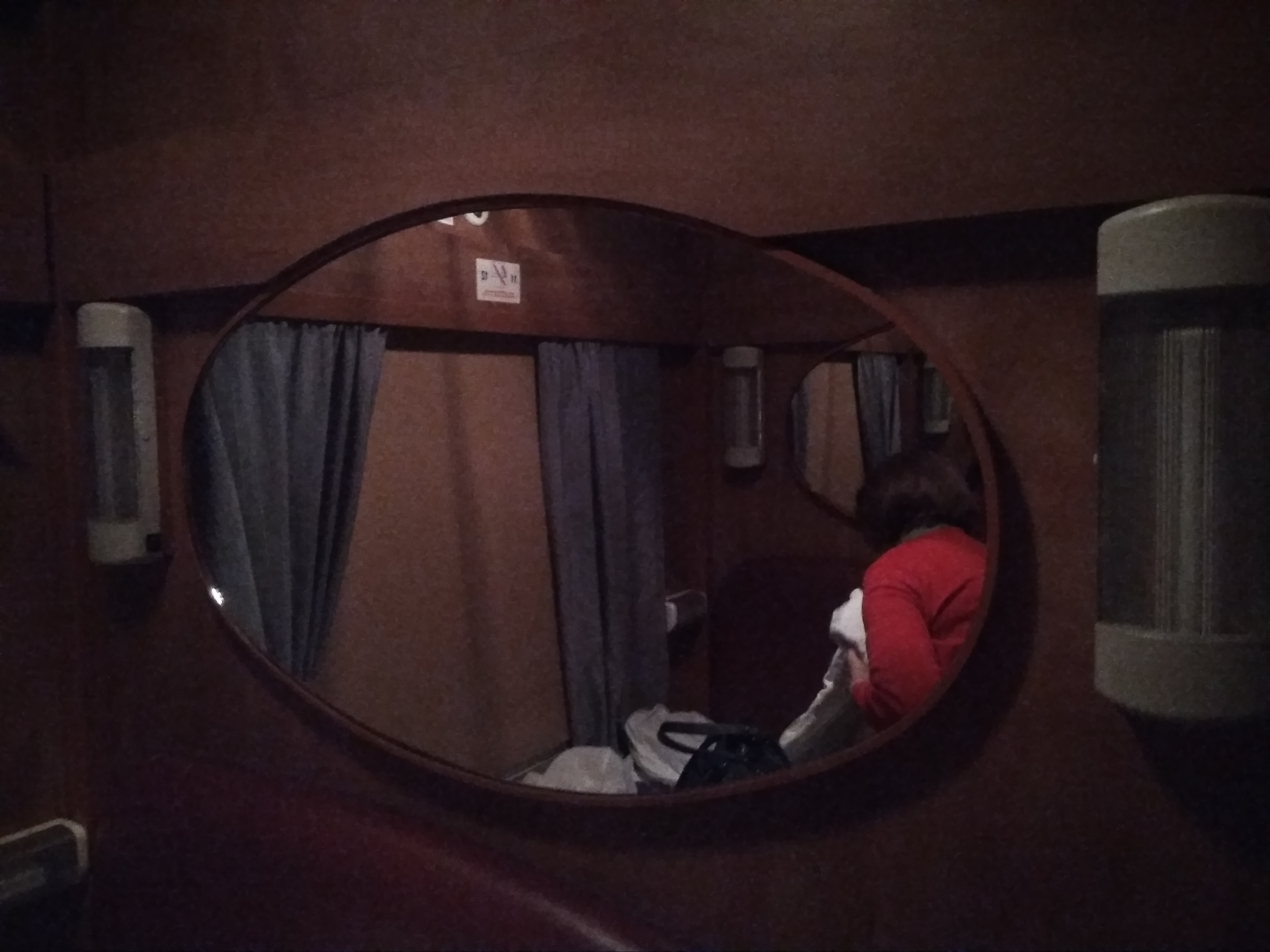 СВ оказался коричневым ТВЗ 2004 года. Довольно уютно внутри. В ходе капремонта матерчатые полки были заменены кожзамом, и это удешевило интерьер, хотя и сделало его более надёжным. Также установили биотуалет.
