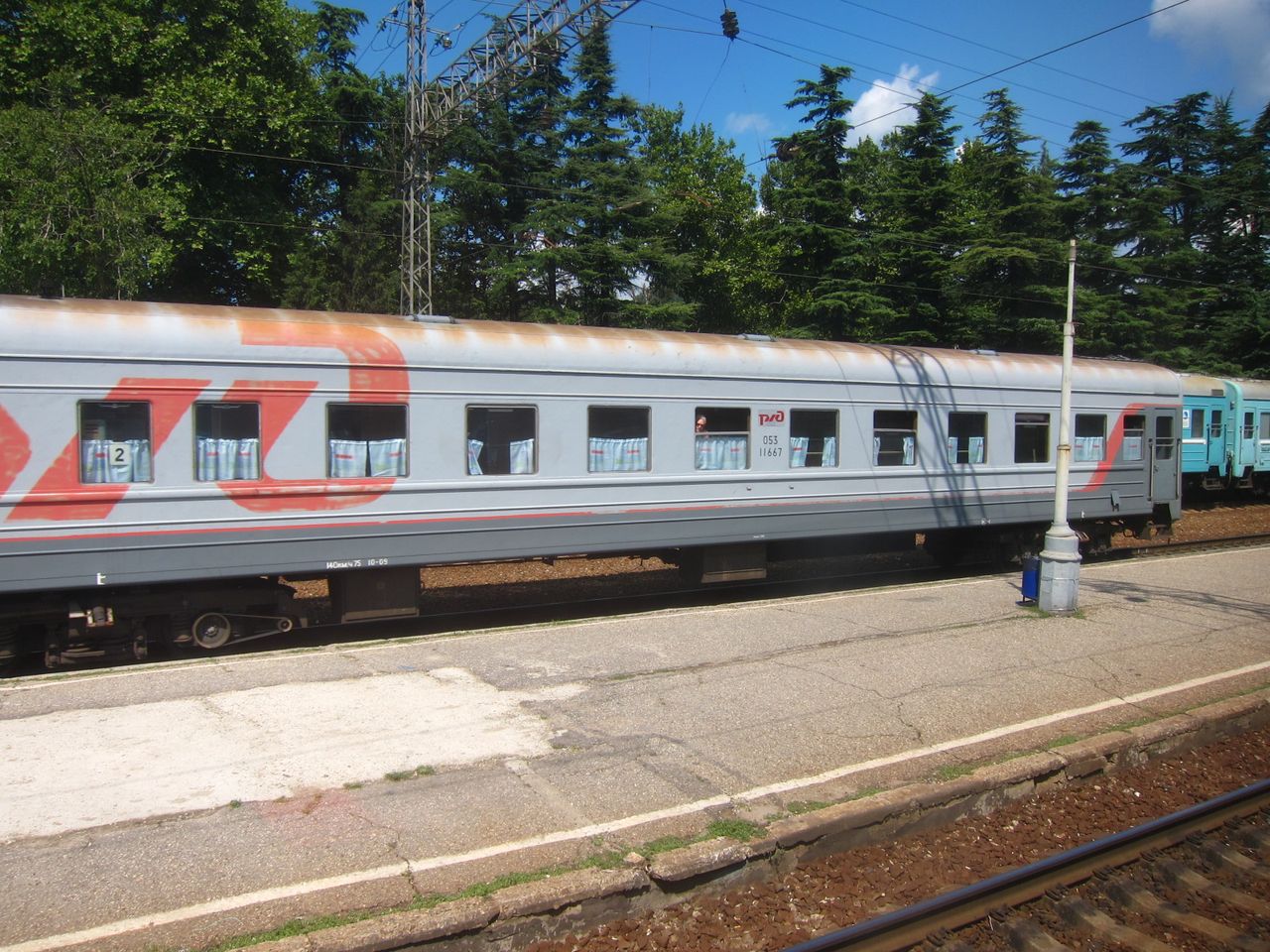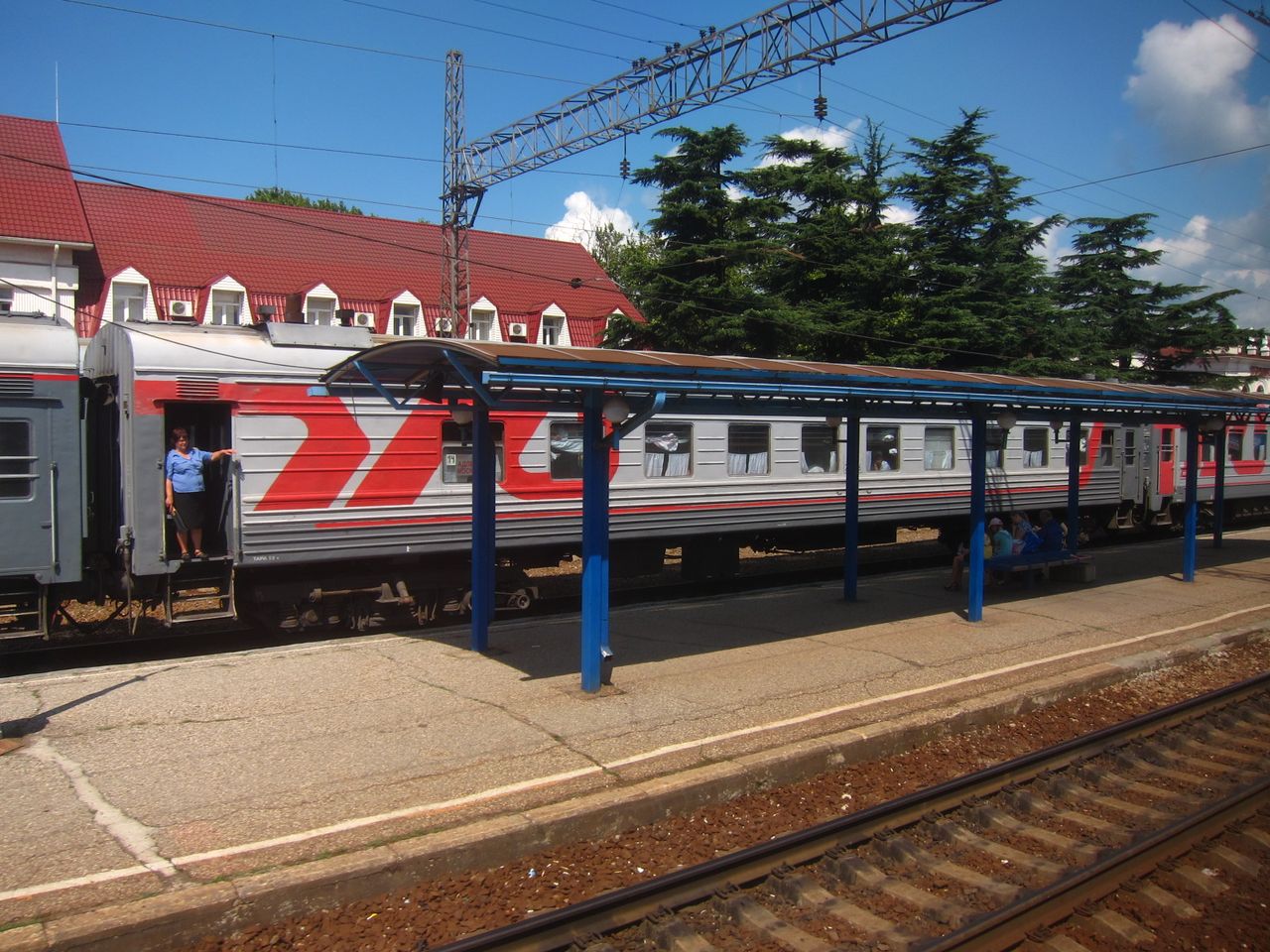 В прошлом году в августе ехали на этом поезде в Сочи. Вагон СВ, шоколадный Аммендорф, не меньше, чем 20-ти летний давности, но при этом совершенно новехонький и полностью оригинальный, все предусмотренные опции, и прежде всего кондиционер, работали как штурманский хронометр. Весь фокус был в том, что этот вагон был из ВЧ-4 (вагонный участок центрального назначения для обслуживания руководства) и в составы для обычных пассажиров его включают исключительно редко, лишь тогда когда требуется срочная замена вагона, а так этот вагон практически круглый год стоит в депо, причем проводники в нем находятся постоянно - отсюда чистота и комфорт. Так что, нам можно сказать повезло. Вообще-то поезд идет очень долго, с так называемыми тех.остановками, то есть по-видимому пропускает фирменные поезда, так между Горячим Ключем и Сочи, тех.остановки по времени составили не менее 2-х часов. Стояли в Долине Очарования, Чинарах, Чилипси, после Туапсе долго стояли в Водопадном. Но, в прошлом году 412 приходил в Сочи вечером, что нас очень устраивало, и потому не оставило негативных впечатлений от безусловных неудобств, ввиду долгого путешествия, да и комфрт, к счастью не подкачал.maks496:Вагон СВ как я уже говорил раньше- это Аммендорф щоколадка. с кондюшником и био туалетом. по крайней мере я на таком еду проводником. через 2 часа уже отправление, в остальных составах тоже вроде бы были немцы... купешки разные есть и ТВЗ есть и немцы... какой с био туалетом угадать сложно. плацкарт разношерстный и КВЗ и Днепры все естьsancho:о! тут вроде проводник с Николаевки был, может он нас просветит про св