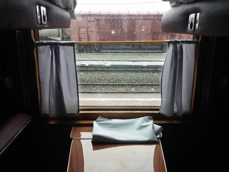 Едем! Все как и в прошлом году! Совковый состав. Очень пыльно, ночью врубили отопление