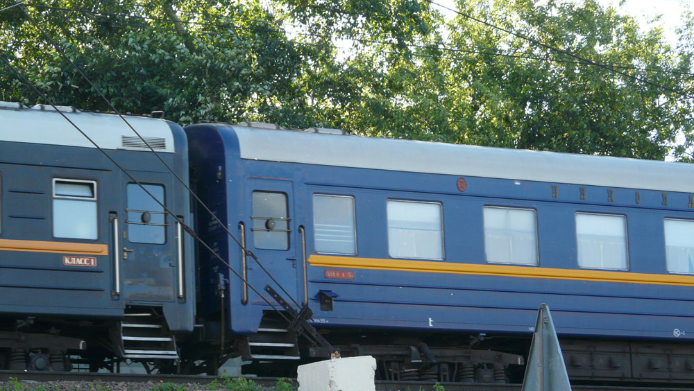 В общем поезд был из вагонов Аммендорф (купе и РЕСТОРАН), ТВЗ и вагонов, прошедших капитальный ремонт на Днепропетровском вагоноремонтном заводе. Цвета: зеленые и новые цвета РЖД – плацкарты и Ресторан, купе были все Николаевский экспресс, Соловей и Тургенев (прицепка до Орла).