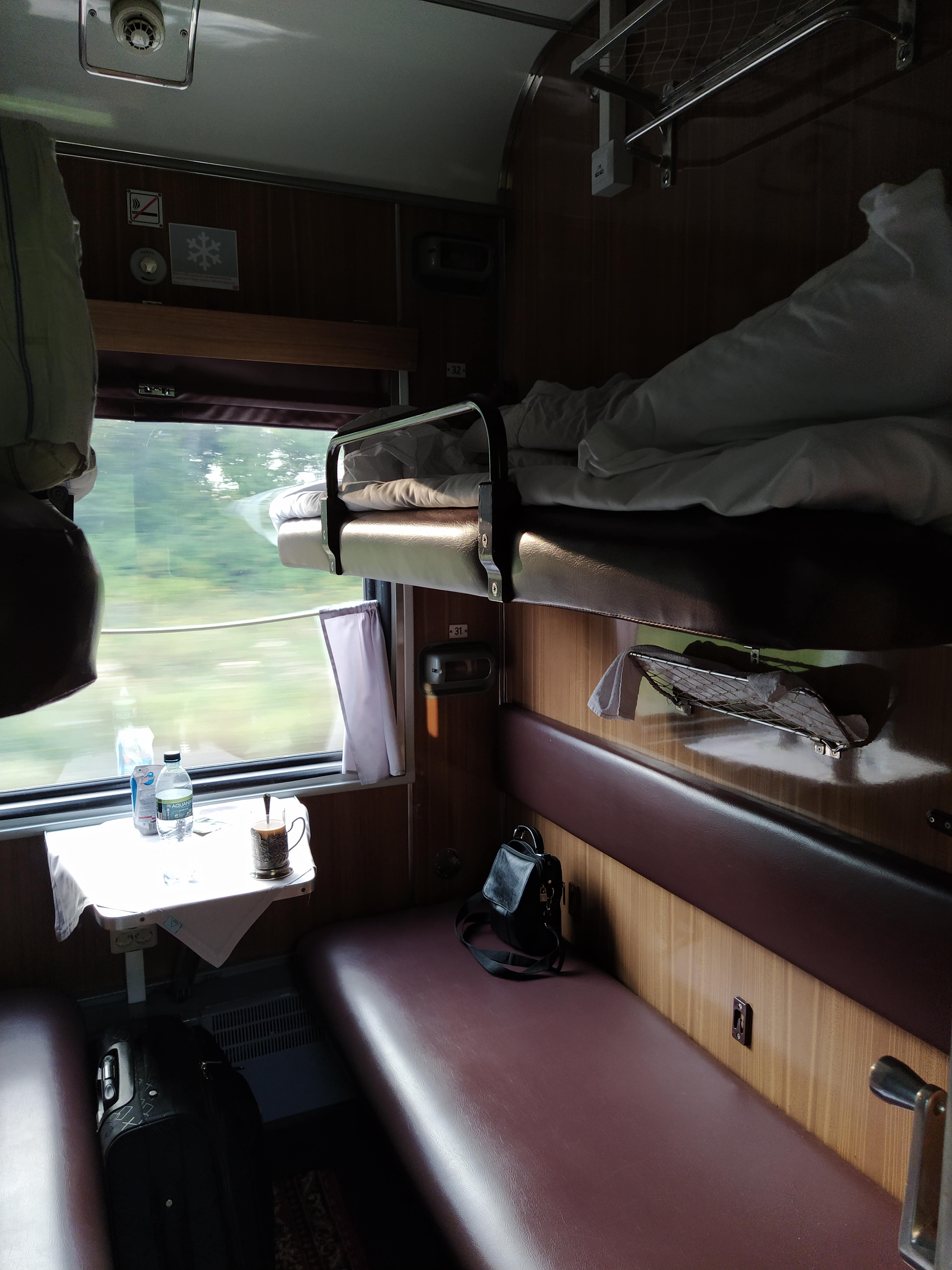 Поездка ради самой поездки, 09.08.20г. Маршрут: Москва - Липецк. Вагон 15, место 32. В вагоне было продано 9 билетов со мной. Никого не видел на посадке, никого утром. Может где и подсаживались, или дальше, система подобное выдает, посадка в Воронеже, к примеру, а путь от МСК до Липецка эти места заняты. Ну, кроме себя и проводницы в одно лицо никого не было... Все так скажем стандартно. Описывать особо нечего, курить нельзя нигде, вагоны купе Аммендорфы, с розетками и USB, но без излишков, как в отзыве ниже. Чисто, заявленное отсутствие биотуалета присутствовало, то есть био. Хорошая постель, пододеяльники в комплекте. Скрипело все довольно сильно, чего не скажешь про ремонт такого же вагона после КВР. Но не критично, спать не мешало. Если кратко - кондиционер работает, туалет не закрывается на стоянках. Ехать можно. Минус балл за отсутствие штор, и минус за отсутствие форточек в купе. Итого 8/10.