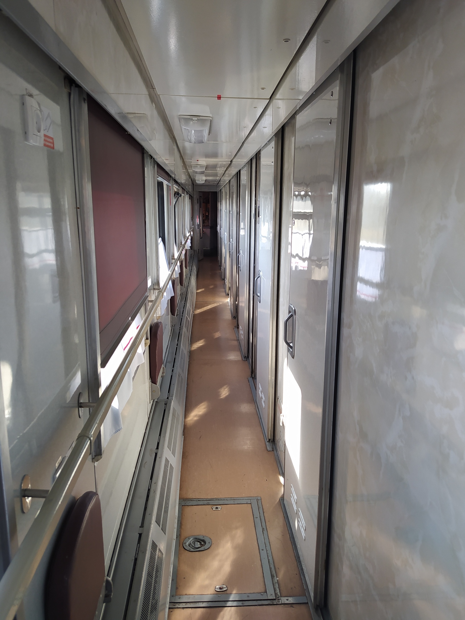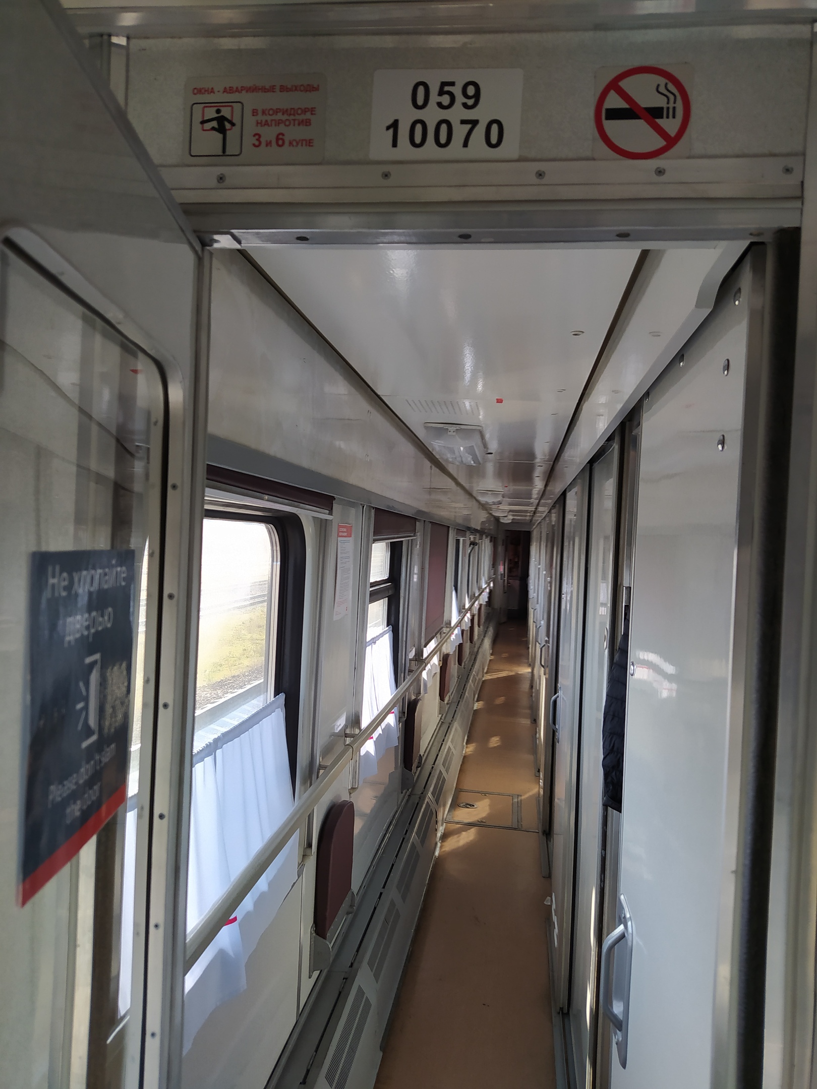 Сам вагон, как и все купейные вагоны, кроме штабного, ТВЗ 2000 с "мраморным" пластиком. (Штабной вагон был СМР). В целом, все работает, туалет био, кондер. Ничего не скрипит. Но видно, что вагону уже много лет. Весь "в латках" после КВР. Контингент пассажиров самый разный, в целом - тихо, спокойно. Почти всю дорогу проспал.