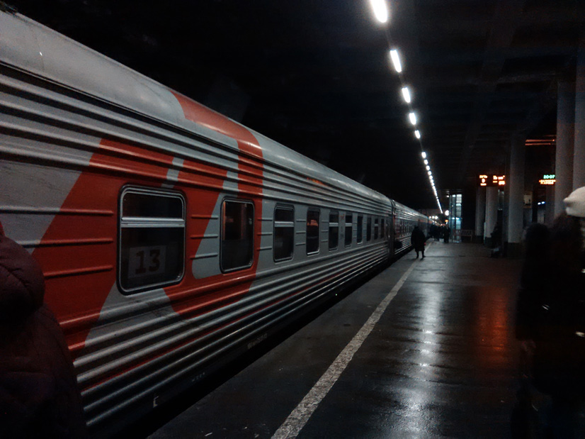 Состав ввиду праздников был необычно длинным, содержимым не удивил: трансформерная и НМР Тверь во всей своей красе. Вагон #17 был, можно сказать, ближе к Каланчевке ::-D: , чем к Курскому. Прилегающая к хвосту состава часть платформы за ночь превратилась в совершеннейший каток - не почистили как следует, видимо, не приняв во внимание возможную составность поездов в эти дни. Кое-как докатились до двери...