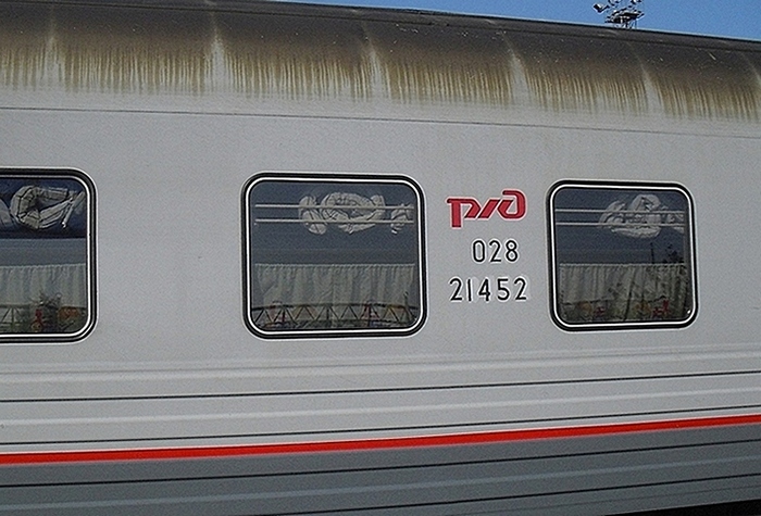 Единственный купейный вагон в составе, КВРенный Аммендорф, раскрашенный в цвета ОАО РЖД. Приписан к ГЖД.