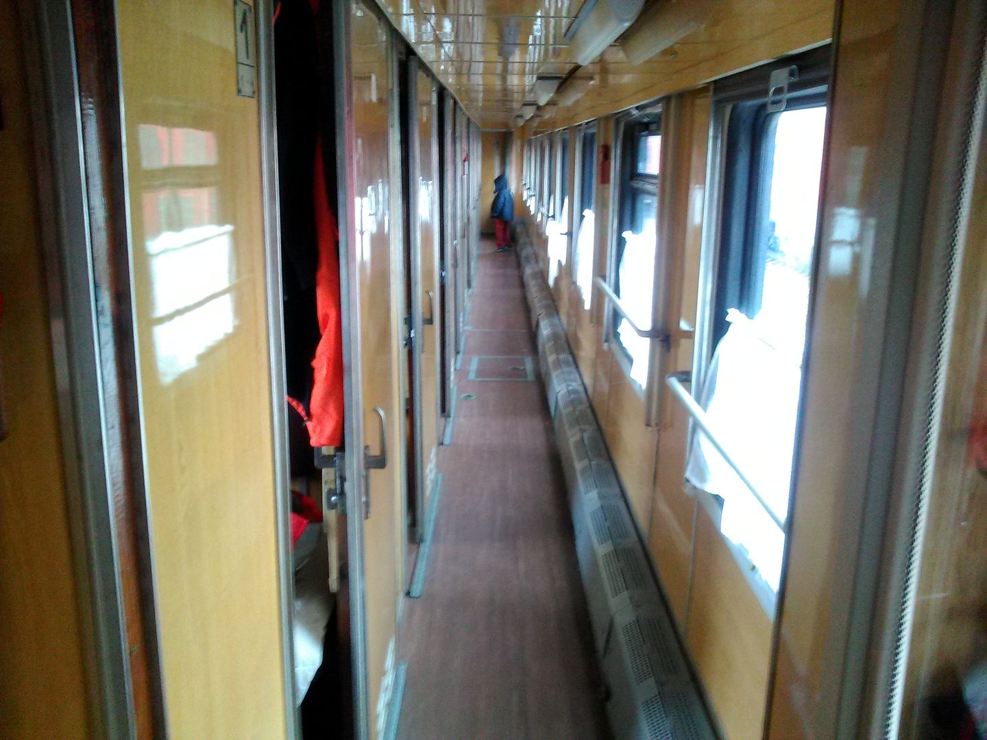 Через час после отправления в вагоне сломалось электроотопление. Проводник топил вагон углём. И топил вроде довольно активно. Но толку было ноль. Я одел тёплые вещи, и всё равно подмерзал. Проводник весь день говорил "батарея горячая, сейчас пойдёт тепло", но... То ли он не умел топить углём, то ли система отопления была неисправна, то ли в вагоне так сильно дуло... Более менее тепло стало только, когда температура на улице поднялась от -15 до нуля.