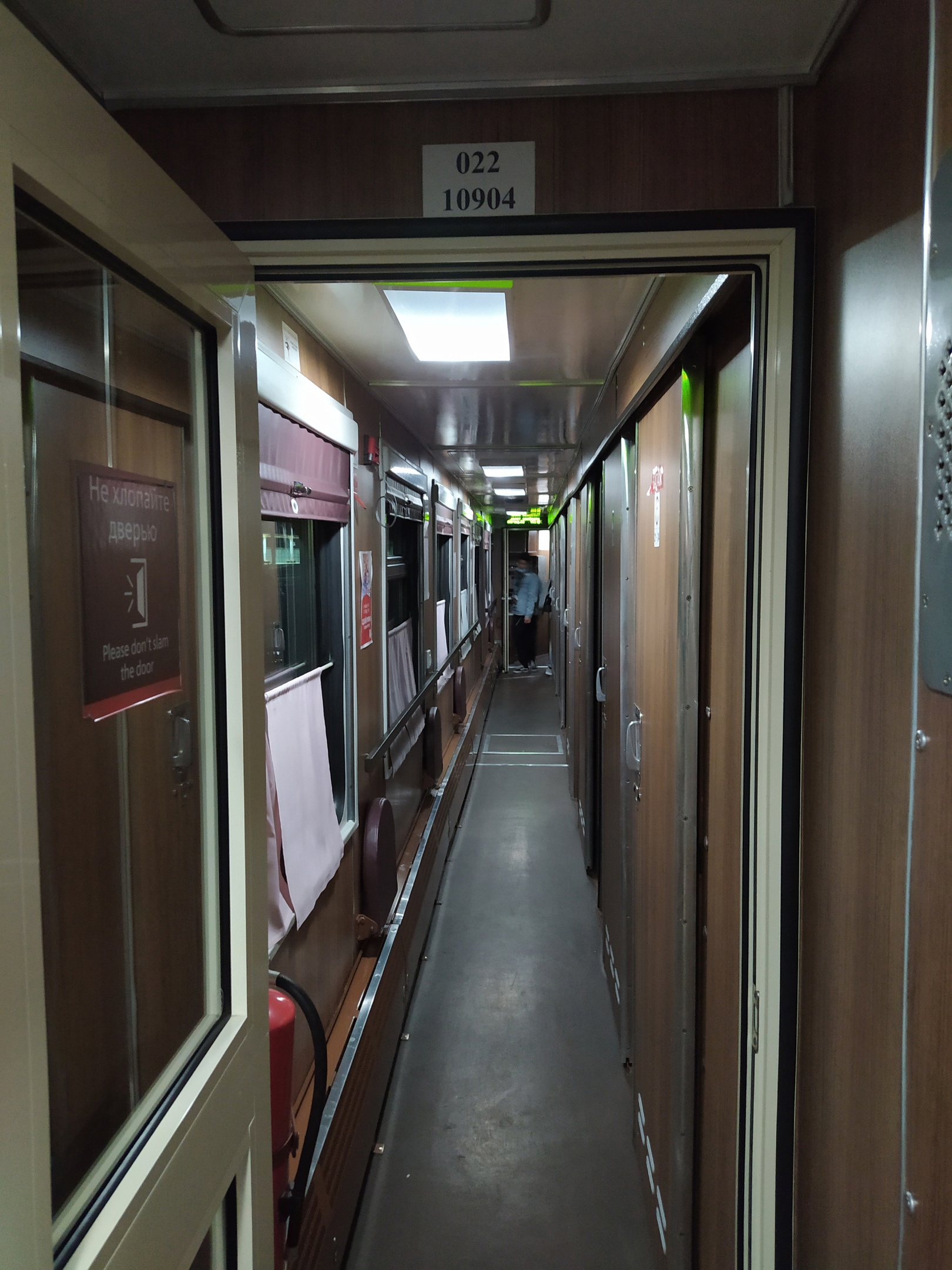 Поезд подали на 8 путь. Счёт вагонов - с головы поезда. Мой 16-й вагон - переделанный под штаб Немец. Хоть вагон и штабной - ехал в купе один.