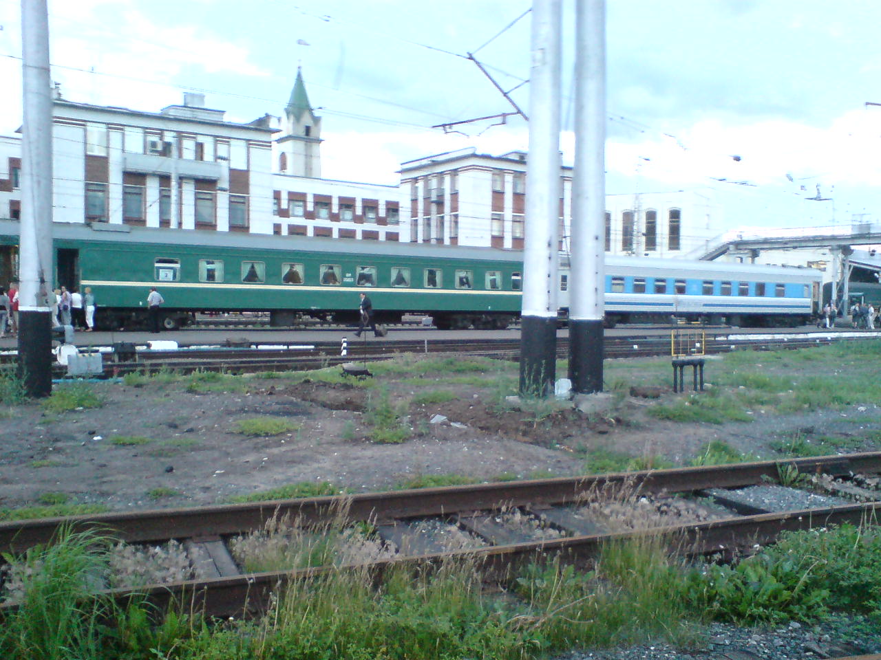 Состав еще разнообразнее и вагоны еще старее. И аммендорфы, и ТВЗ, и днепры, в раскрасе РЖД, бело-сине-красной, Мегаполиса. Есть даже зеленые вагоны, построенные еще в 1979 году!