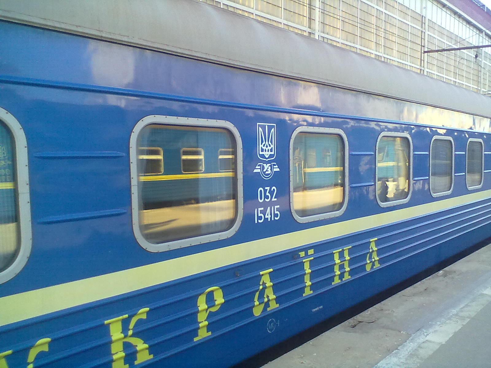 2) Внешний вид – новые свежепокрашенные вагоны в фирменной раскраске с надписью «Україна» и со стеклопакетами в окнах.